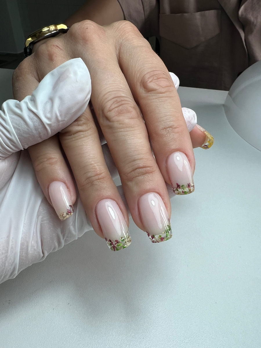 Очень быстро и удобно делать в верхних формах дизайн☝️ выкладываю сразу в гель сухоцветы и отпечатываю на ноготь, просушиваем и немного опиливаем.
