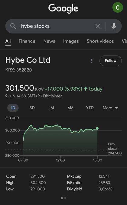 🔮 Акции Hybe снова стремительно растут после новости о предстоящем увольнении участников BTS, становясь лучшим активом среди крупных корейских музыкальных компаний и достигая своего самого высокого уровня с апреля 2022 года! #BTS 🕊️🌸[https://dzen.ru/id/5f3ce54ccaeef80d2efd6e05]🌸🕊️