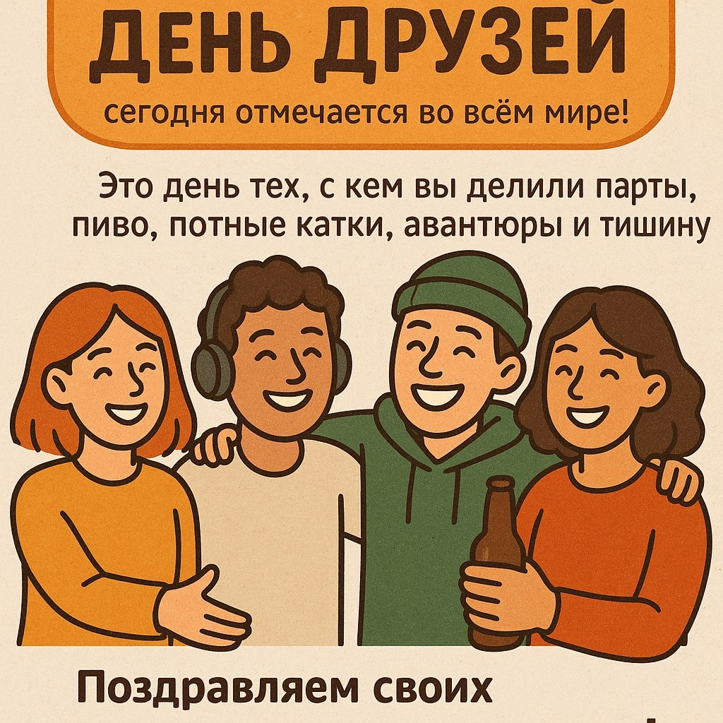 🎉 Сегодня — Международный день друзей! Тот самый день, когда вспоминаем всех, с кем: 🟣 Делили парты и списывали контрольные 🟣 Громко спорили, кто слился в катке 🟣 Лезли в авантюры, о которых лучше молчать 🟣 И просто сидели в тишине, потому что ничего не надо объяснять Берем трубку, шлём мем или собираемся в бар — друзья заслужили это 💜 👊 Хотим больше таких тёплых постов? Подпишись 👉 Нейробухта
