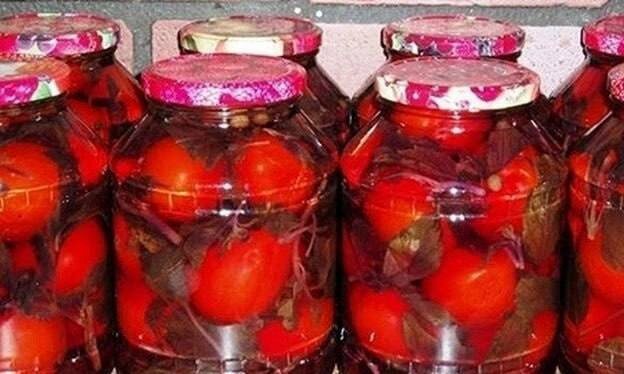 Ингредиенты: Помидоры Базилик Перец горошком - 5-6 шт на банку Горчица семена - ½ ч. л. на банку Чеснок - 2 зубчика на банку Перец душистый 2-4 шт на банку маринад на 1,2 л воды: Уксус 9% - 50 мл Соль - 2 ст. л. Сахарный песок - 150 гр ⠀ Приготовление: Банки стерилизуем, крышки кипятим. На дно кладем чеснок, душистый перец, перец горошком и семена горчицы. Помидоры разложить по банкам, чередуя с базиликом. Сверху кладем веточки базилика. Банки заливаем кипятком до самого верха, прикрываем крышками, оставляем на 15 минут. Затем сливаем воду в кастрюлю. Добавляем сахар, соль, перемешиваем. Варим 3-4 минуты. Вливаем уксус, даем покипеть 1 минуту и заливаем банки. Закатываем, укутываем пледом. Хорошо хранятся при комнатной температуре.