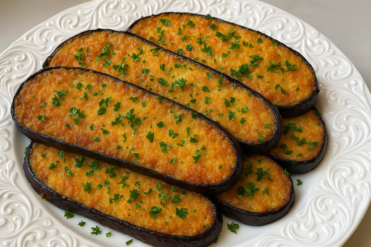 Устали постоянно готовить одно и то же? Попробуйте этот восхитительный рецепт запеченных баклажанов в панировке! Хрустящие снаружи, кремовые внутри и со вкусом, который вас удивит. Идеально подходит для легкого, полезного ужина без мяса. Уверяю вас, даже те, кто не любит овощи, будут в восторге!Ингредиенты: 2 средних баклажана 3 яйца 50 г тертого сыра (моцарелла, чеддер или смесь) Соль и перец по вкусу. Оливковое масло сушеная петрушка или базилик (по желанию) Мука (по желанию, для панировки) Панировочные сухари (по желанию, для панировки) Готовьте с удовольствием, готовьте с любовью! Приятно аппетита! Мира и благополучия вам и вашим семьям! 💕💕