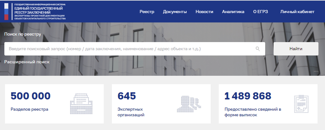 Сегодня в Едином государственном реестре заключений зарегистрирован полумиллионный раздел. Каждый из них содержит результат проведенной экспертизы – заключение экспертизы проектной документации и результатов инженерных изысканий, а также документацию, в отношении которой она проведена. ГИС ЕГРЗ, оператором которой выступает Главгосэкспертиза России, введена в эксплуатацию 1 июля 2018 года. С тех пор в ней аккумулируются сведения о всех заключениях экспертизы, выдаваемых в отношении проектной документации и результатов инженерных изысканий объектов капстроительства на территории России. Это создает возможности для их обработки, анализа и обмена данными с другими информационными системами. В настоящее время через личный кабинет с ГИС ЕГРЗ взаимодействуют 1028 организаций и различных регуляторных органов. С использованием системы межведомственного электронного взаимодействия (СМЭВ) с ГИС ЕГРЗ работают 73 информационные системы различных государственных служб и ведомств, включающих Счетную