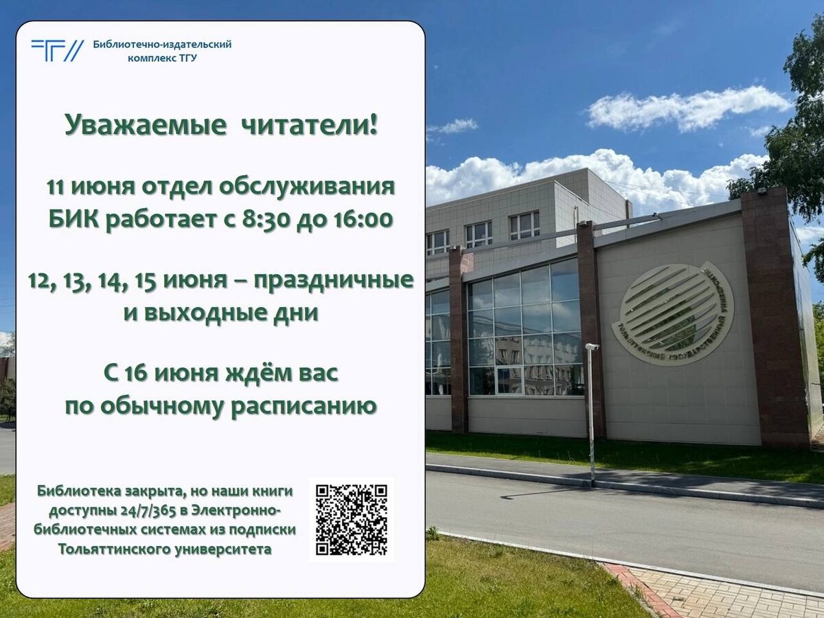 ❗️Изменение расписания в библиотечно-издательском комплексе ТГУ