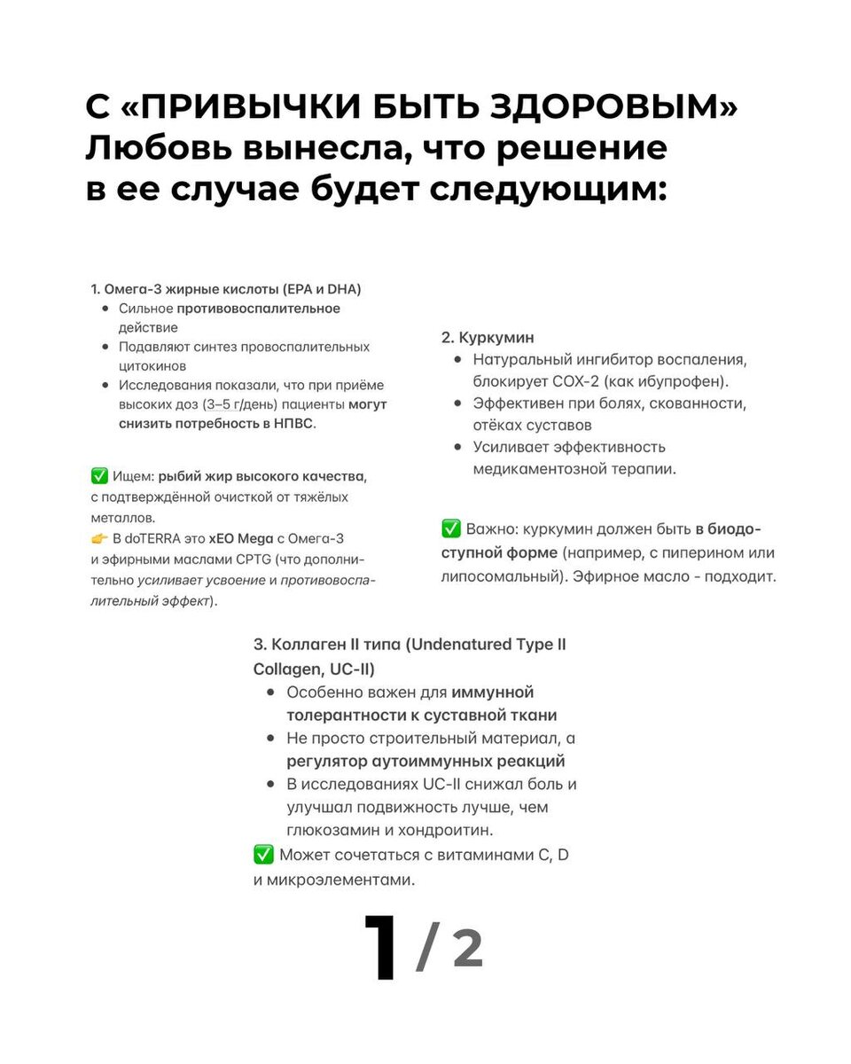 Ещё выше я писала про то, как понять, где норма а где нет? Отвечаю: на МК у нас есть отработанная система оценки собственного состояния - это очень подробная анкета, на основе которой + усвоенной информации, вы будете знать, в какой вы зоне красной / оранжевой / зеленой, и закрытие какие имеенно потребностей организма вам требуется. Почему Любовь подошла ко мне после мастер-класса? Она хотела просто показать свой список всё, что выписала по ходу. Спросила: «Я правильно поняла? Всего ли достаточно?» Я посмотрела и , честно, почти не к чему было придраться. Пара уточнений - и всё. То есть по информации прямо с мастер-класса она сама смогла составить себе рабочую схему. И там ведь не только бады, а сон, физическая активность, питание! Полный комплекс жизни по 5ти сферам! Такие блоки у нас тоже будут, где вы сможете задать вопросы мне и моим коллегам Никаких запутанных PDF на 100 страниц, всё чётко, по делу, логично. Любовь сказала: «У меня впервые за полгода ощущение, что я действите