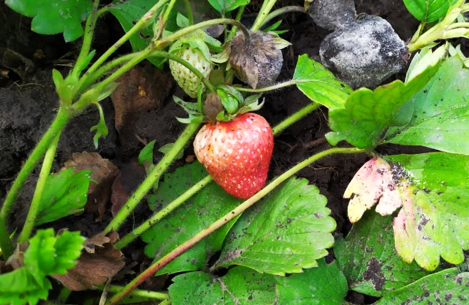 Серая гниль — одна из самых опасных болезней земляники. Может уничтожить до 80% урожая. Особенно в прохладную и влажную погоду.