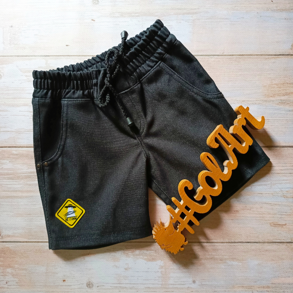 Вчера вечером успела пристроить отрез облегченной джинсы и сшила младшему ещё одни шортики. На этот раз обошлось без ошибок ))) Ну почти без ошибок - пояс сильно резанула сначала, поэтому появилась вставка со шнурком - таким образом и ошибку устранила, и оригинальности добавила, и корректировку по фигуре теперь можно сделать ))) Как сделать такой пояс рассказывала тут: Кармашки не очень глубокие - они здесь больше для вида. Но на всякий случай клёпки поставила - вдруг за лето сын полюбит карманы ))) На штанину пришила стикер из "Магнита". Их когда-то выдавали за покупки, у меня с тех пор лежит несколько разных. Они, на удивление, качественные - текстильные. Собирала шорты как обычно: на оверлоке + дублирующая строчка на прямострочке. Вот вид изнанки полностью: Низ штанин в этот раз просто обработала на оверлоке и подогнула. _______________ Спасибо, что заглянули 🌷