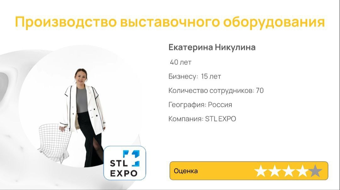 Сегодня мы запускаем двенадцатый выпуск рубрики «100 бизнес-моделей», в котором расскажем о производственно-сервисной компании STL EXPO. Это бизнес полного цикла, специализирующийся на создании премиального выставочного оборудования для корпоративных клиентов по всей России.