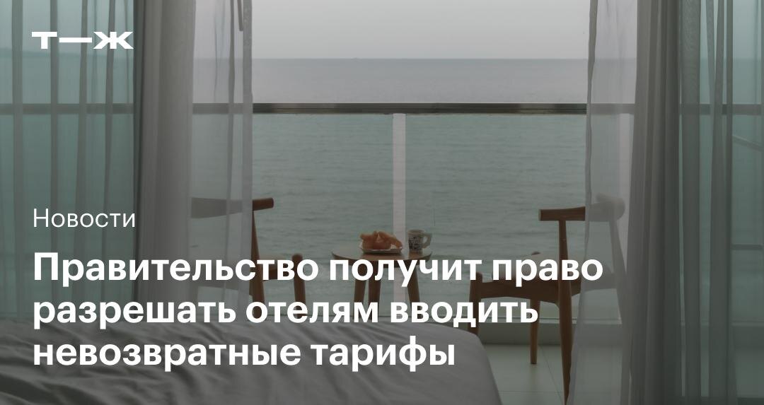 💳 Правительство РФ получит право разрешать отелям сдавать номера по невозвратным тарифам Документ вступит в силу 18 июня и внесет поправки в закон «Об основах туристской деятельности в РФ». Власти заявили, что невозвратные тарифы будут устанавливать по такому же принципу, как в авиаперевозках. У путешественника будет выбор: забронировать номер подороже с возможностью отмены или подешевле, но без опции возврата денег. Если судить по этому заявлению, размер невозвращаемой предоплаты может составить 100% от стоимости проживания: https://j.t-j.ru/ch-tg/nevozvratnyj-otel/
