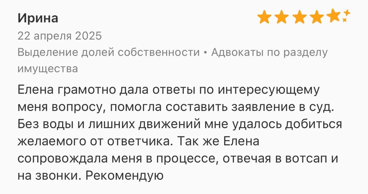 Довольны результатом! 🙏 Спасибо за теплые слова и доверие. Развод, раздел имущества, опека над ребенком, алименты - сложные вопросы, требующие профессионального подхода. Рада, что смогла помочь! #семейныйадвокат #развод #разделимущества #опека #право #юрист #положительныйотзыв