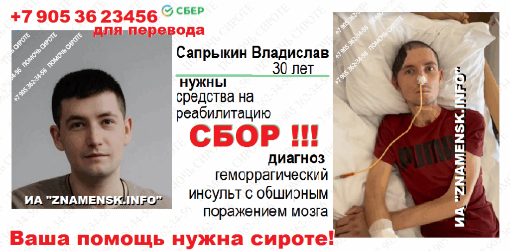 Житель Знаменска Владислав Сапрыкин, оставшийся без родителей, продолжает борьбу за возвращение к нормальной жизни. В прошлом году он пережил разрыв аневризмы, вызвавший геморрагический инсульт с обширным поражением мозга. Молодого мужчину спасли врачи волгоградской Областной больницы № 1, проведя многочасовую операцию с трепанацией черепа и декомпрессией мозга. Несколько недель он находился в коме. Благодаря лечению и поддержке врачей из Москвы, Казани, Астрахани и Ахтубинска, а также усилиям семьи и друзей, его состояние заметно улучшилось. Особенно значимые изменения наступили после курса реабилитации в Астрахани, завершившегося в мае — он впервые смог начать двигать левой ногой. Как рассказали близкие, молодой мужчина уже самостоятельно держит голову, сидит и ест без посторонней помощи. Ушли многочисленные пролежни, нормализовался вес. Его супруга и маленькая дочь, которой всего четыре года, каждый день становятся для него мотивацией продолжать борьбу. Однако реабилитация требует з