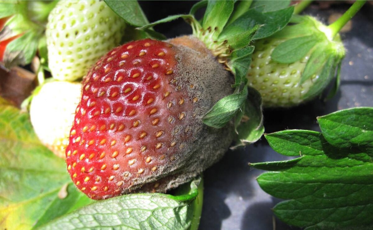 В мае во многих регионах начинается цветение этой всеми любимой ягоды. Дожди во время плодоношения клубники - сильнейшая угроза появления и распространения на ней серой гнили. Это самое неприятное, если не сказать страшное, заболевание клубники. И если другие болезни связаны в основном с повреждением листвы, которая может и нарасти заново, то серая гниль уничтожает урожай, который мы ждем целый год и который уже не восстановится после повреждения. Этот гриб активно развивается и распространяется в условиях повышенной влажности и низких температур, то есть должно быть прохладно и влажно. Причем влажность воздуха должна приближаться к 100%. Как раз эти условия и наблюдаются с середины мая. Проходящие дожди снижают температуру воздуха и одновременно сильно повышают его влажность. Именно в таких условиях просыпаются споры серой гнили, которые зимовали на растительных остатках, почве и т.д. и ждали благоприятных условий для своего пробуждения. В фазу цветения конидии (споры грибов) зара