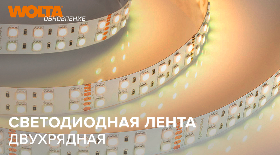 Большой ассортимент светодиодных лент от WOLTA® пополнился новой моделью двухрядной ленты. Преимущество данной модели – два ряда светодиодов, благодаря чему достигается повышенная интенсивность и равномерность свечения. Такие ленты используются в профессиональных проектах освещения не только для создания основного освещения, но и изготовления линейных светильников, а также рекламных конструкций: - При помощи двухрядной ленты можно сделать широкие световые линии в жилых помещениях, офисах, торговых центрах, отелях и ресторанах. Они прекрасно подходят для пространств с высокими потолками. - Изготовление линейных светильников на базе двухрядных светодиодных лент производят подвесные и накладные линейные светильники из алюминиевого профиля. - Из таких лент создаются световые фигуры, инсталляции и лайтбоксы. В ассортименте WOLTA® есть двухрядные ленты мощностью 24 Вт/м и с различными цветовыми температурами: 3000К, 4000К и 6500К.