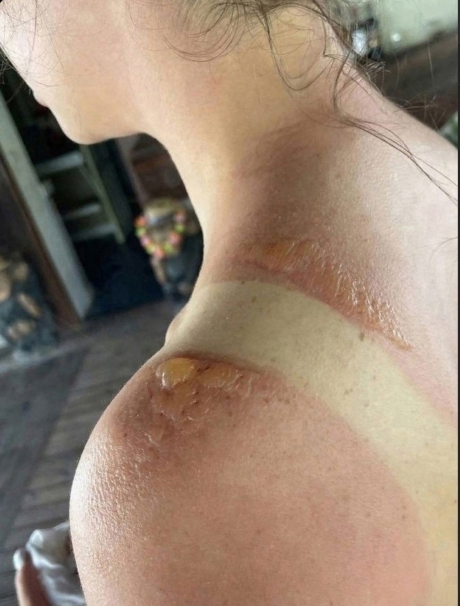 Солнечный отдых обернулся кошмаром для молодой особы. Всего несколько часов под открытым небом, привели к серьёзным проблемам со здоровьем — её кожа получила сильные повреждения.