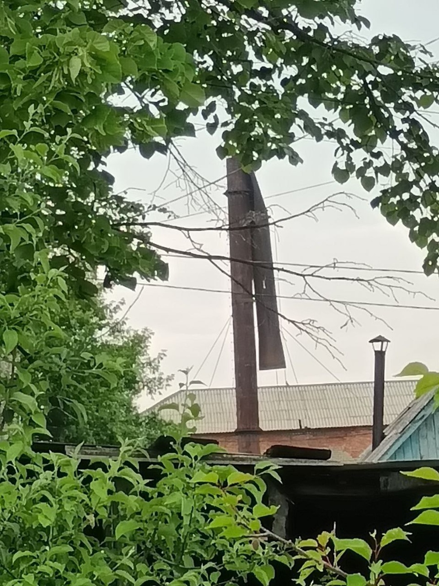 Последствия вчерашнего ветра. Труба на котельной в Мелиораторе. — — — делится подписчик