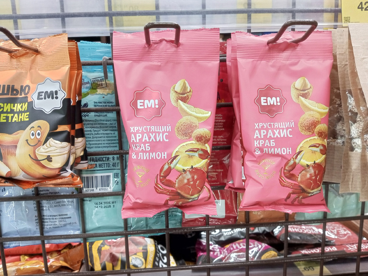 Довольно необычная новинка появилась в ассортименте - арахис в хрустящей корочке со вкусом краба и лимона. Сами-то такие орехи существуют давно и мне они нравятся, но данный дуэт вкусов может получиться довольно специфическим, тем более, что нередко в таких продуктах ароматизатора или слишком много, или слишком мало, редко удается найти действительно вкусную глазурь. На орехи посмотрела, подумала о том, что надо будет их купить, но пока не тратилась.