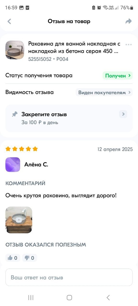 Ещё отзывы на ОЗОН. "Крутая раковина", "Всё супер" 🔟