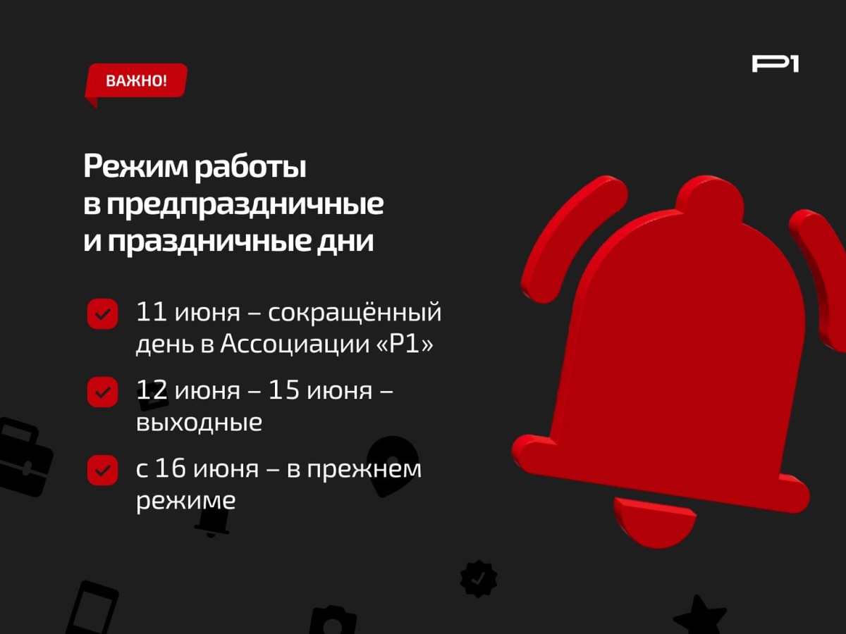 🔔 Режим работы Ассоциации «Р1» в предпраздничные и праздничные дни