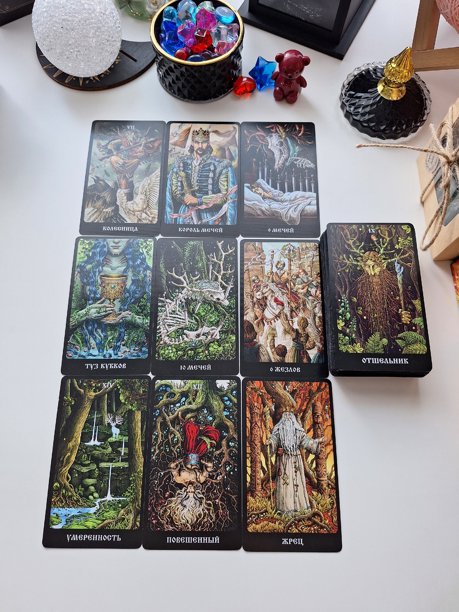 🚗💨 Колесница событий мчится♥️, и вот он — Король мечей🔞! Его мысли остры, как лезвие🌶️, но вот беда: 9 мечей терзают его разум🗡️. 💔 Но не спешите отчаиваться!🌹 Ведь тут же появляется Туз кубков❤️, полный любви и надежды. Да, 10 мечей может показаться, что все потеряно💋, но 6 жезлов напоминают: победа близка!💋 🧘♂️ Умеренность поможет найти баланс🍒, а Повешенный готов взглянуть на мир под другим углом🍓. Жрец даст мудрый совет🍒, а Отшельник — время на размышления.🖤 ✨ Ваше послание от любимого: не теряйте веру!❤️ Даже когда все кажется сложным, любовь всегда найдет путь. ❤️