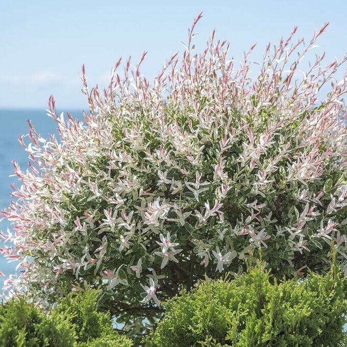 Это декоративный листопадный кустарник или маленькое деревце высотой от одного до трёх метров, шириной около двух метров. Быстро растёт и формирует округлую крону. Молодые побеги имеют яркий розовый оттенок, переходящий в оливковый по мере взросления растений. Листва создаёт иллюзию цветов, хотя настоящи