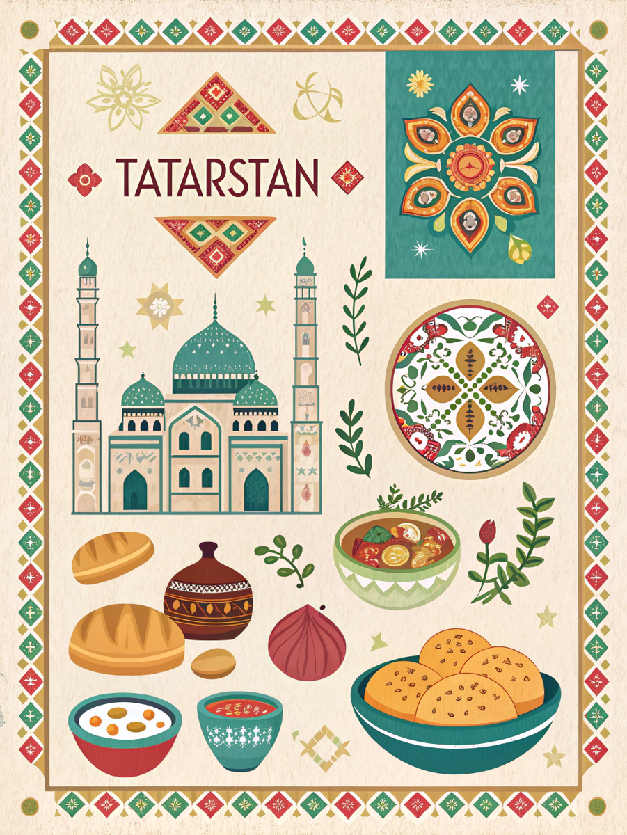 Сегодня с нейросетью решили пофантазировать о том, как бы выглядели открытки с Российских регионов, если бы этим бизнесом занимался искусственный интеллект. Есть весьма удачные варианты, есть не очень, а что-то можно вполне доработать, но качество меня весьма и весьма впечатлило, я бы купила) Республика Татарстан Начала я, естественно, с региона, в котором сама проживаю, и с первого варианта это попадание прямо в сердце,. Дальнейшие открытки специально делал в едином стиле. Запрос, по которому нейросеть сразу поняла, что мне нужно: Сделай плакат с национальной едой, символикой, иллюстрациями, отражающими Казань и Республику Татарстан для туристов, сделай необычную подборку и добавь интересные элементы дизайна, например, узоры. Калининградская область Сначала вариант получился не самым удачным, но в этой открытке тоже что-то есть, какая-то своя атмосфера. После нескольких попыток, довели открытку до "идеала", и самое главное, она стала приближена по стилистике к Татарстану, ведь мы со