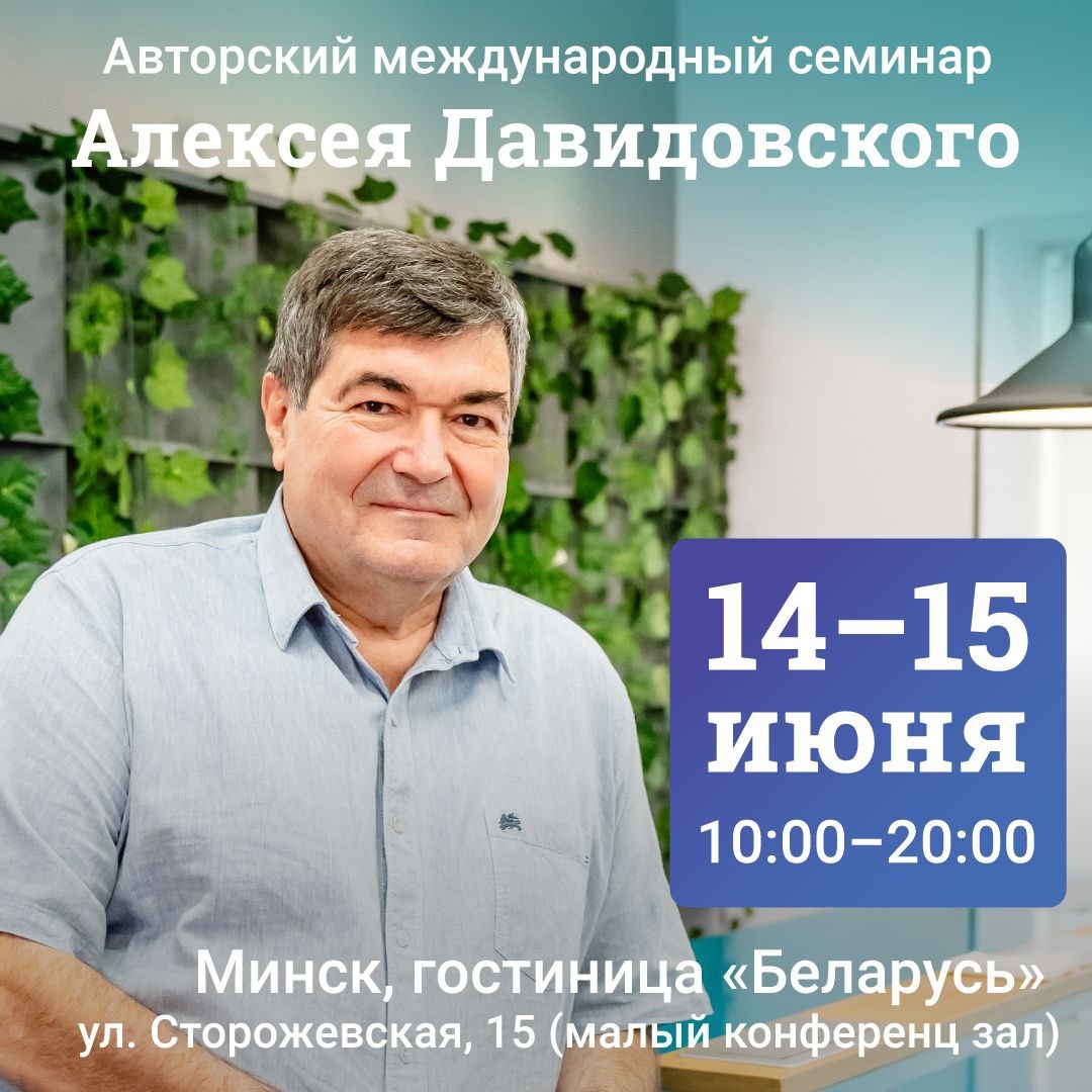 Казалось бы, совсем недавно мы только встретили 2025 год, поздравили друг друга под бой курантов 🌲... а уже июнь 🥳...уже лето 😍 За эти полгода участники семинаров Алексея Давидовского получили свои результаты и уверено шагнули в свою новую жизнь, попрощавшись с тем, что отработано. Согласитесь, зачем брать с собой болячки и проблемы? 😁 Но июнь еще все же не закончился и 2 города в ожидании своих результатов 🥰 Уже в эти выходные 14 - 15 июня Алексея встречает Минск!!! Организатор в г. Минск @Aleksasvetaorg с удовольствием ответит на все ваши вопросы 21-22 июня Москва
