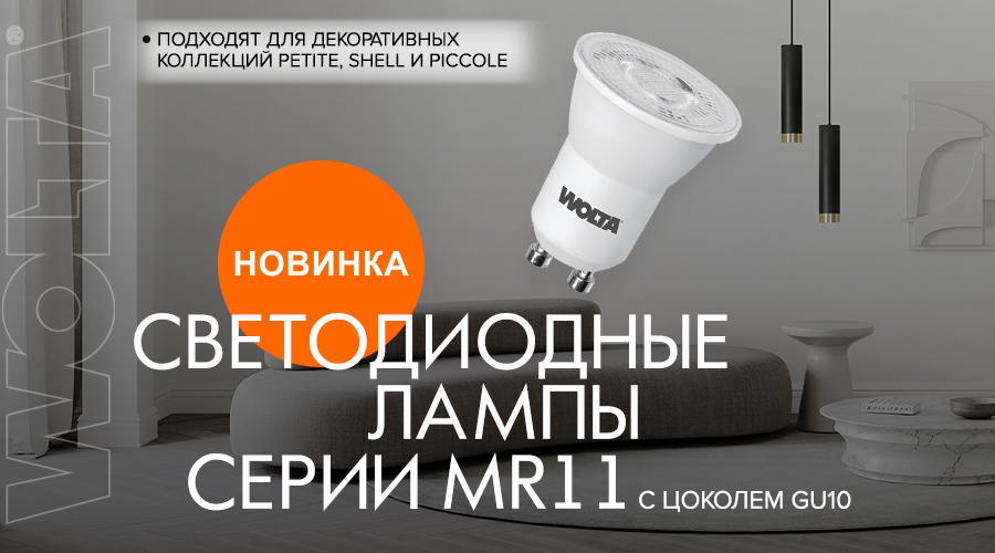Новинка от WOLTA® – светодиодные лампы серии MR11 с цоколем GU10. Данные лампы отличаются маленьким диаметром 35мм, поэтому подходят для декоративных светильников новых коллекций Petite, Shell и Piccole. MR11 оснащены оптической линзой с углом рассеяния светового потока 48°. Это позволяет использовать лампы в светильниках для акцентного и декоративного освещения. Наличие IC-драйвера обеспечивает освещение без пульсации (Кп≤5%) в широком диапазоне входного напряжения 170-250В. Количество циклов переключения – 50 000, гарантия – 2 года.