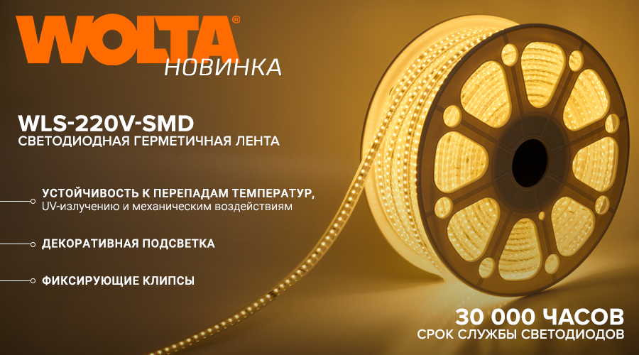 Светодиодная герметичная лента серии WLS-220V-SMD – это современный и энергоэффективный источник света, предназначенный для наружной подсветки рекламных конструкций, загородных домов и беседок.