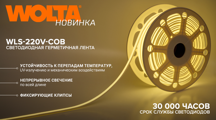 Новинка от WOLTA® – светодиодная герметичная лента серии WLS-220V-COB