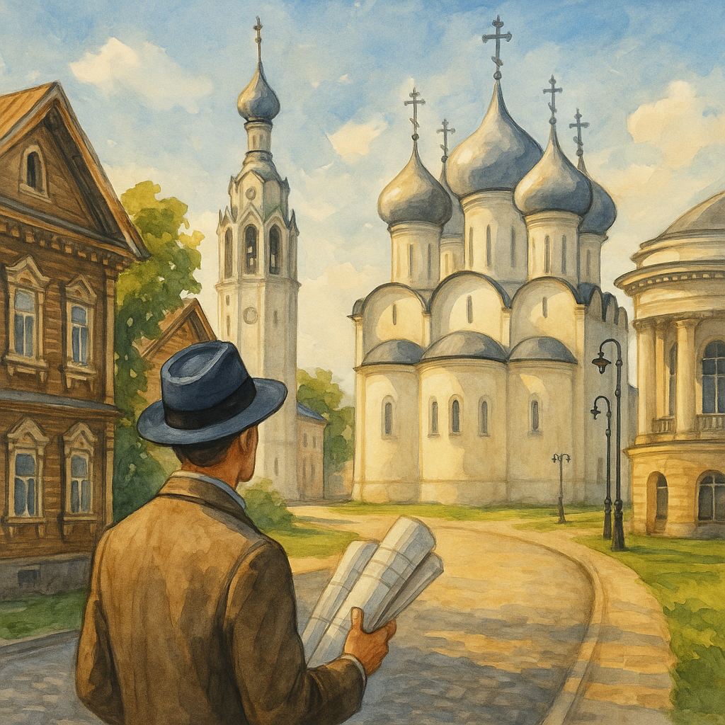 Вологда — это не только купеческая история и знаменитое кружево. Это город с выразительным архитектурным лицом, в котором переплелись деревянное зодчество, русский классицизм и элементы модерна. Предлагаем пройтись по центру города так, как это сделал бы архитектор — замечая неочевидное, сравнивая эпохи и чувствуя город «по слоям». Пешую прогулку можно начать от Софийского собора, одного из старейших каменных храмов Русского Севера. Обратите внимание на его пропорции и размещение — храм доминирует в силуэте, но не подавляет. Напротив него — здание Архиерейского двора, где можно рассмотреть классические приёмы крепостной архитектуры. Двигаясь в сторону улицы Засодимского, попадаешь в другой Вологду — деревянный. Ажурные наличники, двухэтажные купеческие дома, сохранившие резные элементы — это примеры городской деревянной архитектуры XIX века. Многие из них сегодня требуют реставрации, но даже в их текущем виде — они очаровывают. 🏛 Интересный факт: Вологда считается одним из немногих кр