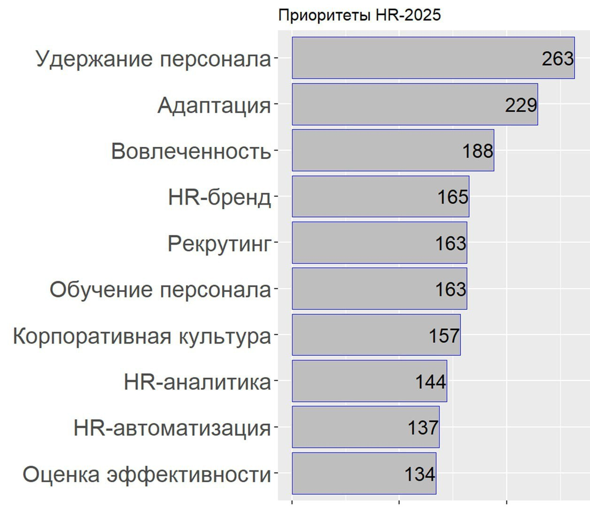 ПРИГЛАШАЮ ОТСЛЕЖИВАТЬ НАС В ТЕЛЕГРАМ Да, знаю, все на тоненького – и даже за уши притянут анализ, но это и не анализ даже, а так, гипотеза. На диаграмме результаты нашего опроса HR-приоритеты. Ниже в списке пункты, претерпевшие максимальные изменения за три года ведения опроса. Первая цифра после пункта – результат в опросе 2025, вторая – 2024, третья – 2023. ✅Адаптация 2; 3; 6 ⬆️ ✅Вовлеченность 3; 5; 5. ⬆️ ✅HR-бренд 4; 6; 10 ⬆️ ✅Рекрутинг 5; 2; 2-3 ⬇️ ✅Обучение персонала 6; 4; 1 ⬇️ ✅HR-автоматизация 9; 7; 4 ⬇️ Адаптация выросла с 6 до 2 места, Вовлеченность с 5 до 3 места, HR-бренд с 10 до 4. Рекрутинг упал со 2 место до 5, Обучение с 1 до 6 (!), HRtech с 4 до 9! Упавшие пункты - Рекрутинг, Обучение, HRtech – я бы назвал рациональными методами / инструментами в HR – здесь понятны метрики, влияние на бизнес, все более или менее можно посчитать. А вот Вовлеченность и HR-бренд я бы назвал иррациональными методами – вроде понятно, что надо их развивать, но до сих пор непонятно, как их и