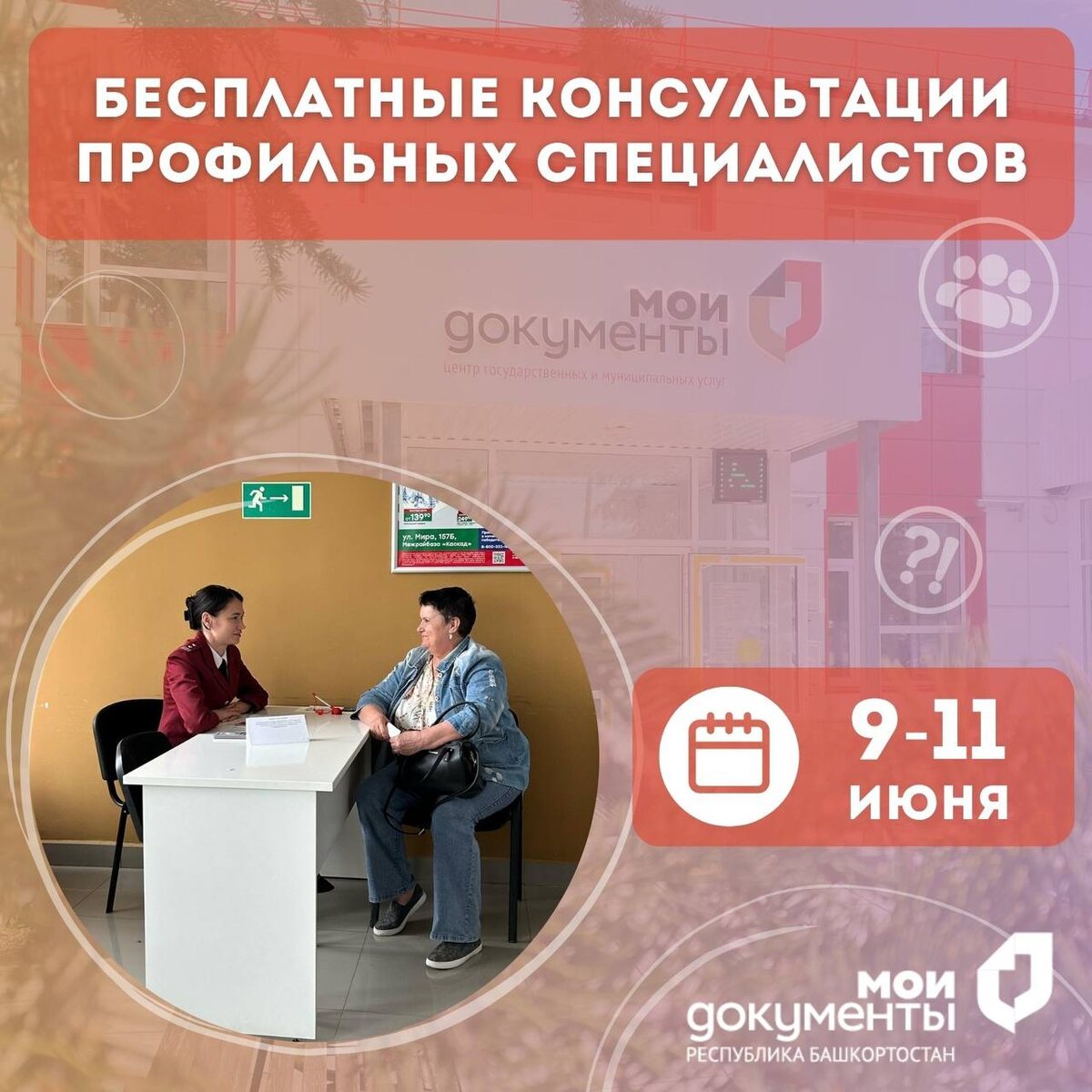Бесплатные консультации профильных специалистов в офисах МФЦ Башкортостана с 9 по 11 июня