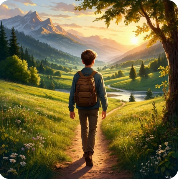 Однажды, в тихой деревушке у подножия гор, жил молодой парень по имени Максим. Каждый день он мечтал о приключениях и дальних странах, но как и все жители, работал на поле с рассвета до заката. Однажды вечером к деревне подошёл старик с загадочной картой и странными словами: — Ветер перемен уже идёт. Следуй за ним, и найдёшь то, что ищешь. Максим решил последовать совету. На рассвете он отправился в путь. Дорога вела через тёмный лес, бурные реки и высокие вершины. По пути он встретил разных людей — мудрого отшельника, весёлую торговку и странствующего музыканта. Каждый из них дарил ему кусочек мудрости и надежды. В конце пути Максим нашёл не сокровища или славу, а место, где земля встречается с небом — спокойное озеро, отражающее мечты и стремления. Тут он понял, что главное приключение — найти себя и свою мечту. Вернувшись в деревню, Максим стал вдохновлять других идти за своим ветром перемен.