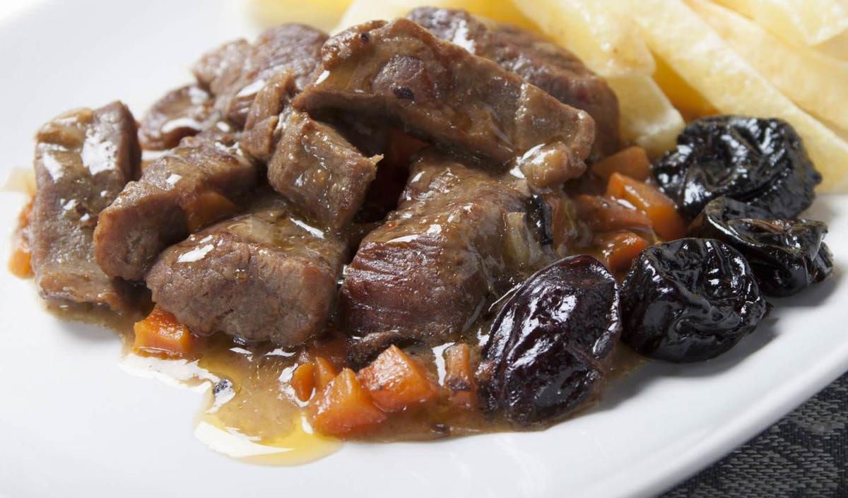 Ну а теперь к рецепту, который точно вас удивит! Ингредиенты: • Свинина шея — 3 кг • Чернослив — 300 г • Лук репчатый — 5 шт. • Томатная паста — 350 г • Вода — 600-700 мл • Соль — по вкусу • Сахар — 1 ст.л • Паприка острая — по вкусу • Перец чили — 1 шт • Растительное масло — для жарки Приготовление: 1. Подготовка ингредиентов. Нарезаем свинину крупным кубиком. Лук также нарезаем крупно. 2.