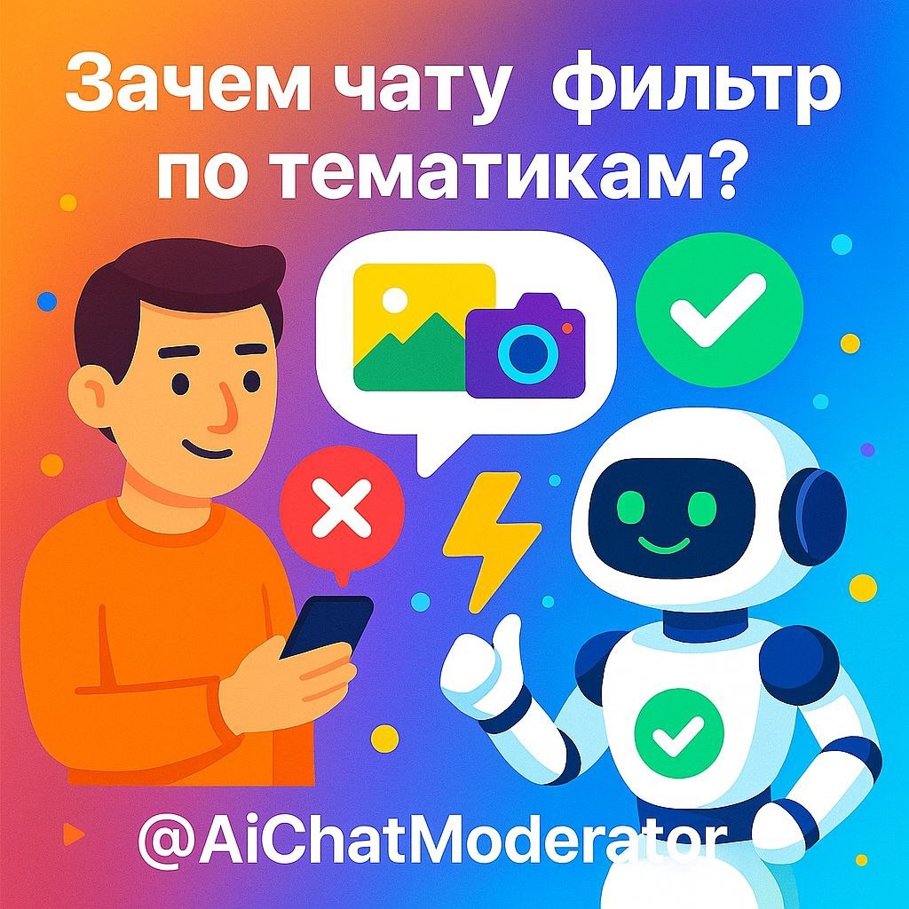 Кажется, всё идёт спокойно, обсуждают по теме, задают вопросы, делятся опытом. И тут: «а кто что думает про крипту?» Или «ищу инвесторов, кто в теме - в личку». 📌 Такие сообщения часто запускают цепочку отвлечённых обсуждений. Тема чата теряется, участники не понимают, о чём здесь вообще говорят. Фильтр по тематикам помогает держать разговор в нужном русле. Вы сами решаете, какие темы для чата не подходят — политика, реклама, крипта, оффтоп. 📷 Например, у вас чат для фотографов. Там уместны разговоры о камерах, съёмке, обработке. А обсуждение курсов по «финансовой свободе» или последних новостей, лучше оставить за пределами. 🤖 AiChatModerator фильтрует сообщения по смыслу, а не только по словам. Он отличает полезное обсуждение от флуда. И делает это по правилам, которые вы задаёте сами. Итог: меньше оффтопа, больше ценного общения. А участники чувствуют, что находятся в комфортной и понятной среде. А вы какие темы запрещаете у себя в чате? Или разрешено всё, кроме спама?