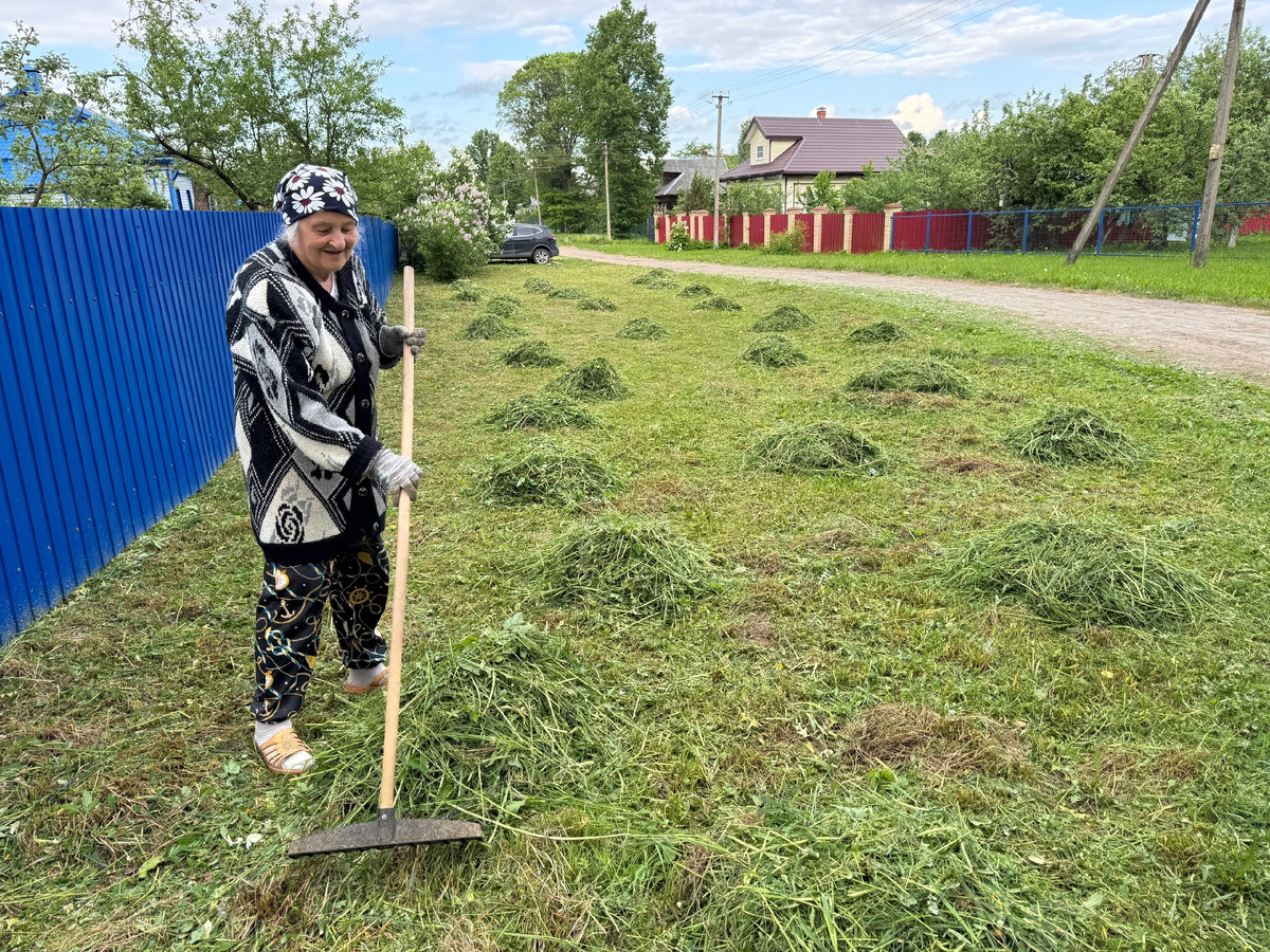 Недавно у меня была статья о том, как Сергей скосил траву за участком, а я сгребала её в кучки, чтобы потом её складывать в тачку и везти в компостную кучу. Так вот, на следующий день Сергей приехал и привёз Тимофея, чтобы тот перевёз всю траву в компостную кучу. Приехали к обеду. Так что сначала пообедали, немного отдохнули, а потом отправились убирать эту траву. Тимофею очень нравилось возить тачку, что он с удовольствием и делал. Они с отцом такие хитрые, сообразили , что можно эту траву нагружать в тачку прямо через забор. У отца ведь высокий рост, а высота забора всего 150 сантиметров. Он безо всякого усилия перекидывал траву через забор прямо в тачку, которую Тимофей располагал с другой стороны забора в удобных для отца местах. Правда, Тимофею пришлось подправлять траву, но это было даже и интересно. Вот так, как бы играючи, вся моя трава оказалась в компостном ящике. Тимофей её выгружал и снова подъезжал к забору с внутренней стороны, а папа снаружи всю траву переносил прямо в т