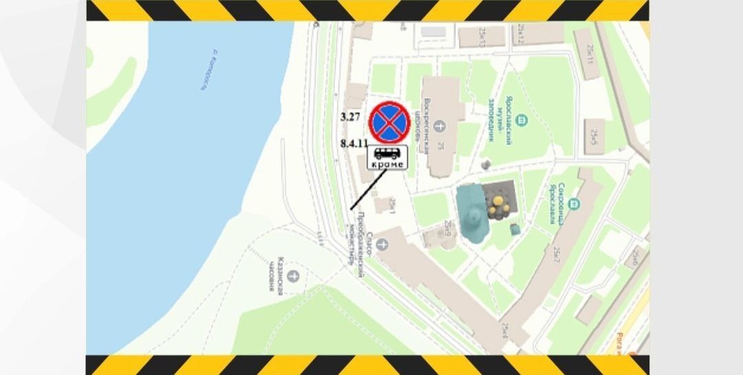 В Ярославле вводятся ограничения на Которосльной набережной: автомобилям запрещены остановка и стоянка возле музея-заповедника, исключение сделано только для автобусов.