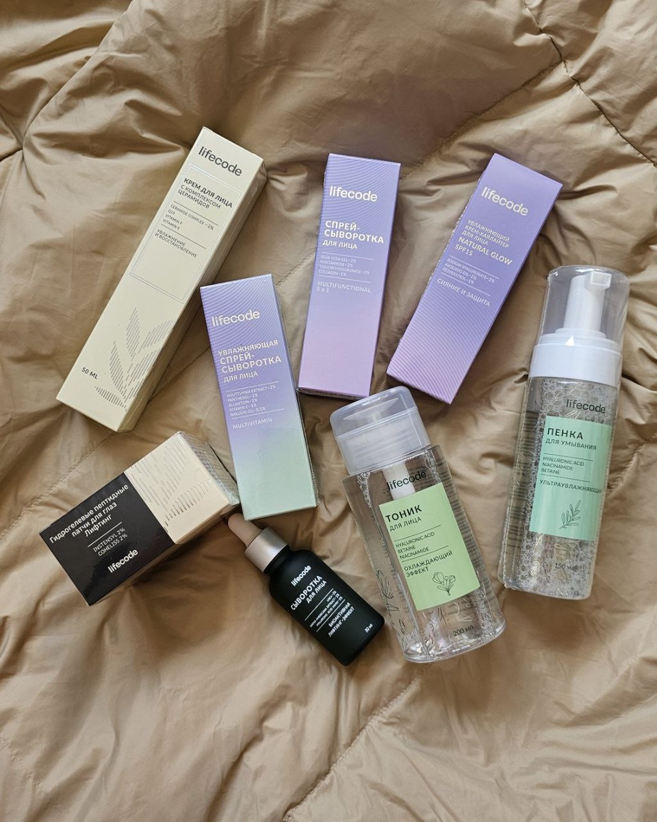 Если вы видите одни и те же банки в постах месяц за месяцем — значит, это не просто хороший продукт, а почти член семьи бьютиголика У меня так сложилось с брендом Lifecode, кажется, я уже скупила половину их ассортимента, и останавливаться не планирую Главная находка — спрей-сыворотки. Формат, который должен был появиться в моей жизни давно: • Небольшой флакон легко помещается в сумку или косметичку • Напшикал и кожа уже увлажнённая, напитанная, холёная • Можно использовать до крема, поверх макияжа, в течение дня Мои два фаворита: 1. Multivitamin — лёгкое увлажнение + витамины Обожаю распылять в жару: кожа не липкая, нет жирной плёнки, а в составе — витаминный коктейль, который оживляет даже после бессонной ночи 2. Сыворотка 5в1 — сияние, упругость и защита Это тот случай, когда за пару секунд лицо выглядит свежее, ровнее, особенно в тандеме с кремом А недавно они выпустили новинку — увлажняющий крем-хайлайтер. Настоящее сияние от ухоженности и легкий по текстуре, сразу затестила