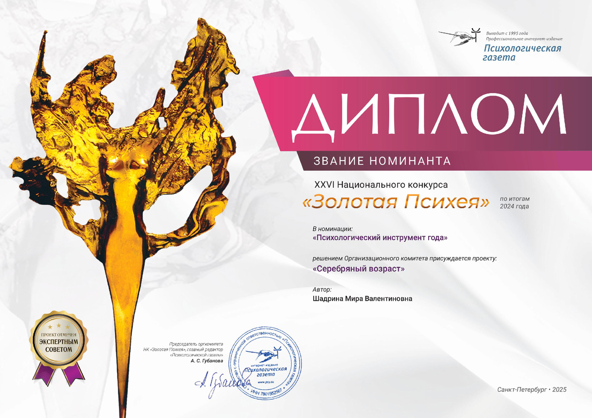 Участие в XXVI Национальном конкурсе “Золотая Психея” стало важным вдохновляющим этапом для дальнейших достижений в области психологии. Уникальность площадки заключается в возможностях для каждого участника - обмен опытом, презентация наработанных научных достижений, знакомство с работами коллег, погружение в атмосферу профессионального психологического сообщества. Впечатляет высокий уровень организации конкурса, продумана каждая деталь - от регистрации участников, до проведения финальных презентаций. Профессиональное жюри, состоящее из ведущих специалистов в области психологии, позволяет провести ответственный и справедливый отбор. Впечатлило разнообразие представленных работ - от научных докладов, до разработанных программ психологической помощи, позволяющим оказывать помощь клиентам в дистанционном формате. Раскрыты актуальные на сегодняшний день темы. Участие в конкурсе обозначило точки роста и определило вектор дальнейшего профессионального движения. Мотивация к развитию получила