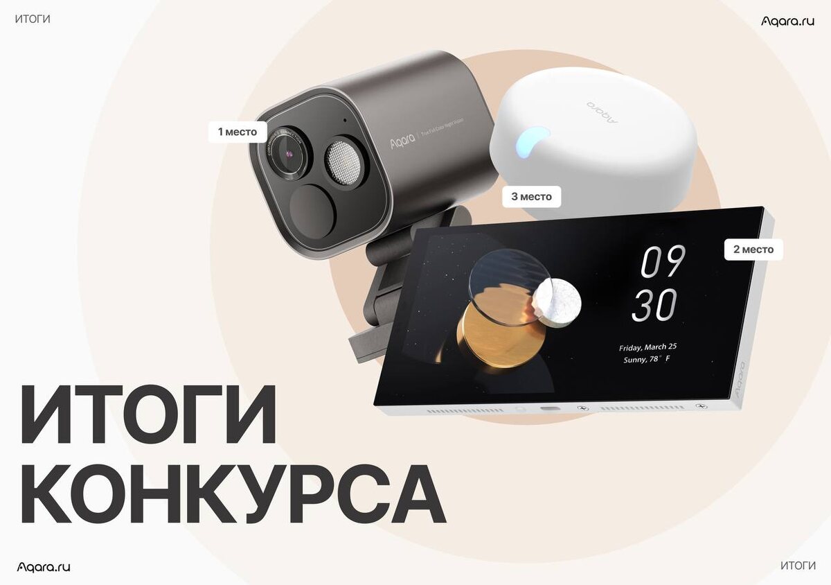 Итоги конкурса на 3 лучших обзора умного дома или DIY-решения с устройствами Aqara! 🧡 Огромная благодарность всем, кто принял участие в конкурсе. Своими автоматизациями вы вдохновили не только других пользователей, но и команду aqara.ru! Рады объявить 3 победителей: 🏅1 место — обзор умного двора загородного дома. Уникальные автоматизации ворот на территорию дома, сада и крыльца, которые работают даже в условиях дождя, мороза и пыли. Приз: камера хаб Aqara G5 Pro Ссылка на видео. 🏅2 место — большой обзор умной квартиры молодой семьи. Эффективные сценарии для создания умного коридора, кухни, зала и спальни с автоматизациями, которые сделают жизнь удобнее и безопаснее для родителей и ребенка. Приз: панель управления Aqara S1 Plus Ссылка на видео. 🏅3 место — обзор возможностей умного замка Aqara D100. Видео про любимое умное устройство пользователя и его супруги, которым они с удовольствием пользуются уже 2 года. Приз: датчик присутствия Aqara FP2 Ссылка на видео. 🎉 Поздравляем