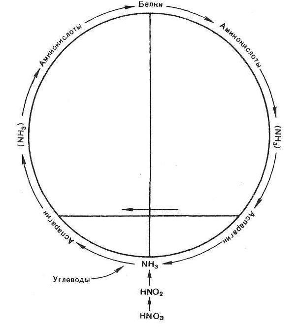 Схема превращения азотистых веществ в растении (по Д.Н. Прянишникову)