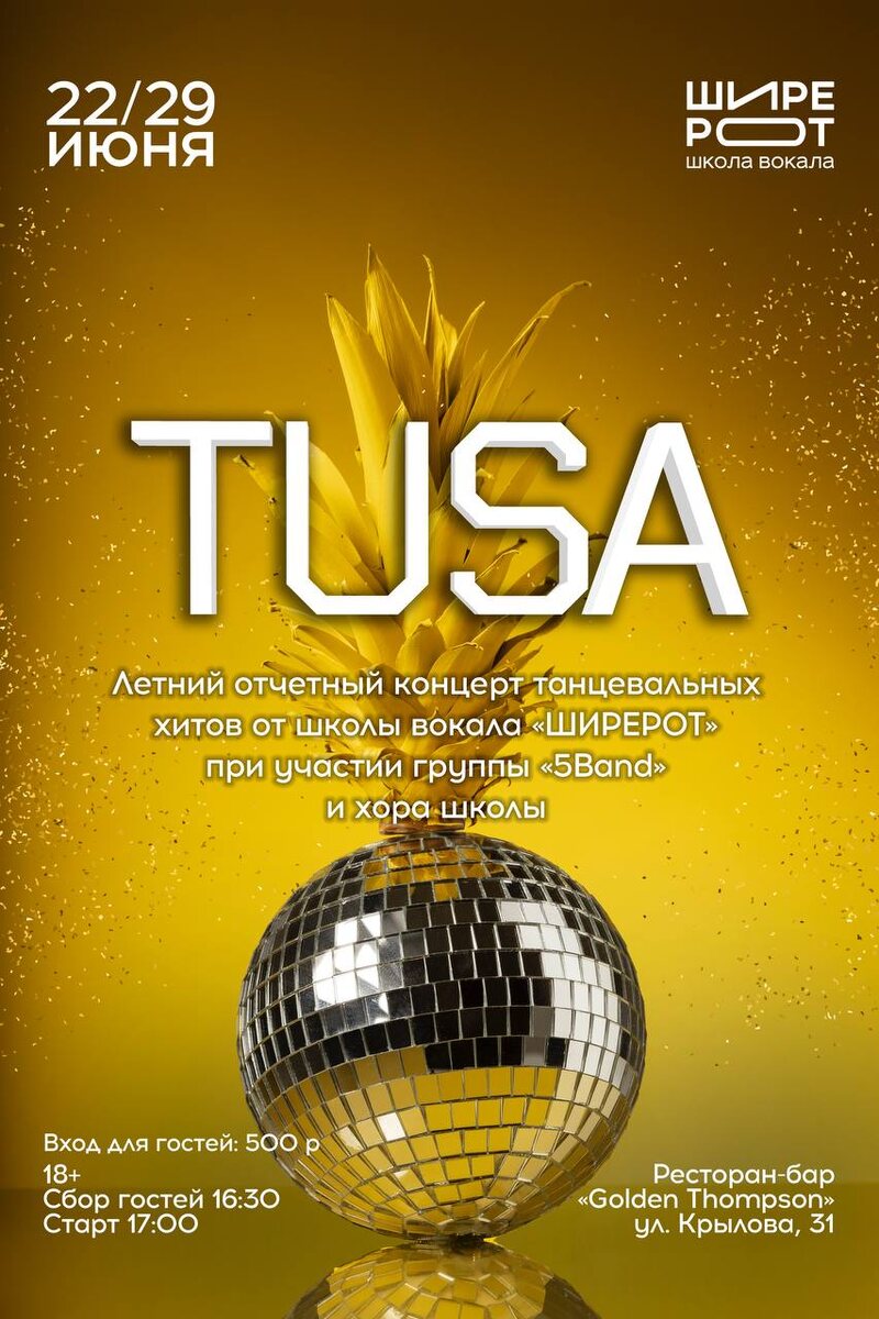 22 и 29 июня танцуем на ТУСЕ «ШИРЕРОТ»!💃🏼 2 дня танцевальные хиты от наших учеников Награждение по номинациям всех участников Стоимость входа для гостей 500р Место проведения ресторан «Golden Thompson» ул. Крылова,31 Забегай на летнюю тусу с «ШИРЕРОТ»🥰 будет как всегда мощно и круто!