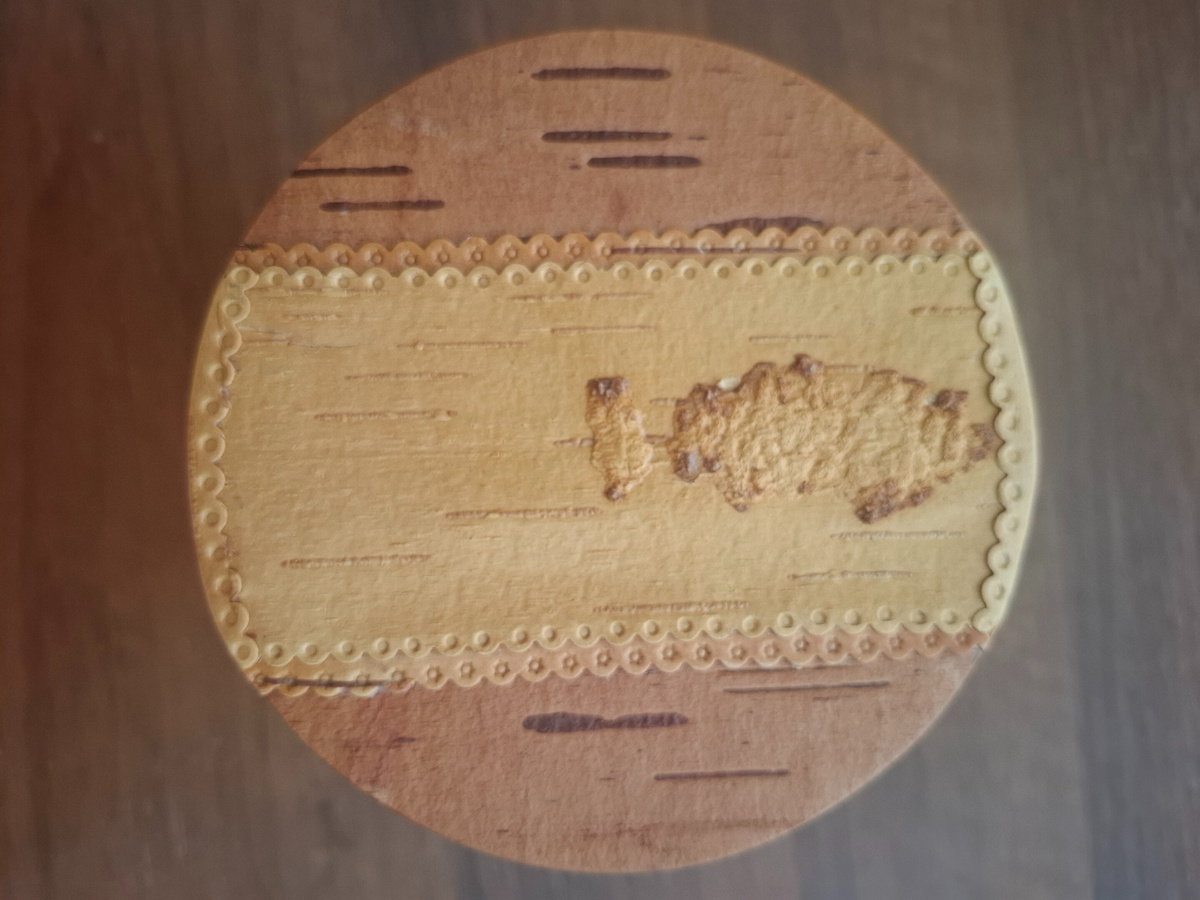 Приветствую читающих. Необычное оформление , потому как необычная береста. Начала показывать с крышки, хотя начало было с боковины туеска, это потом уже детали к крышке подбирались из всего что можно. Какие наросты по всей площади листа. Мне от этого листа досталось только на боковинку. Искала в своих берестяных обрезках что -то похожее, чтоб сочеталось . На полную крышку не нашлось. Пришлось, резать, склеивать, подгонять. Нарост на крышке похож и на дерево, и на рыбу, с какой стороны посмотреть. Туесок прошедшей недели. А это опять фото из дальних странствий. В музее Нижнего Тагила в сувенирном магазине сфотографировала. Мимо не могла пройти. Берестяной экземпляр единственный. Рискнуть что- ли попробовать вырезать такое. Размер панно небольшой 20*20 Больше на экскурсии бересты не встречалось. Зато повезло узнать новое и даже попробовать на мастер классе расписать поднос . Но об этом уже в другой раз. Живите с удовольствием. Всем добра, тепла и мира. Читайте, подпис