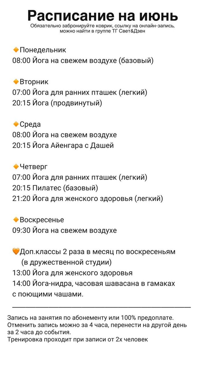 Расписание на июнь, чтобы было удобнее планировать! Но на этой неделе из-за праздников занятий меньше. Всегда самое актуальное расписание в онлайн-записи. Ссылка на онлайн-запись