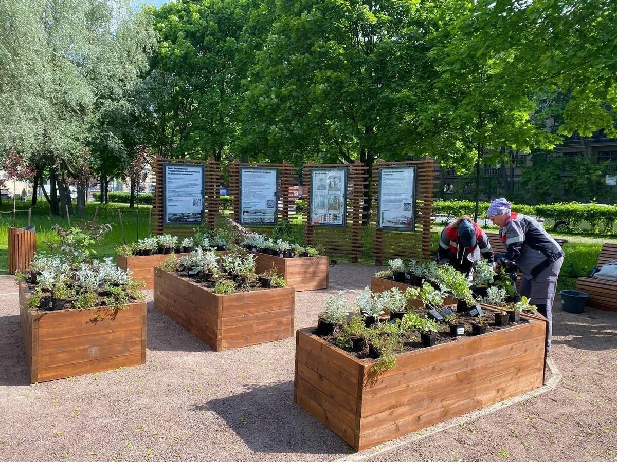 К уже готовым «аптекарским огородам» в Муринском парке, сквере Володарского в Колпино и нескольких локациях на юге Петербурга добавили ещё несколько, сообщили сегодня в пресс-службе вице-губернатора Евгения Разумишкина. Как уточняется, живые композиции создали в Московском парке Победы, парке Авиаторов, сквере Раисы Штрейс, Приморском парке Победы, а также в саду Александра Матросова. «Очень просим бережно относиться к этим зелёным зонам: не срывайте растения, не ломайте конструкции и не используйте грядки как место для отдыха», – говорится в сообщении. Ранее «Петербургский дневник» сообщал, что в Московском районе высадили саженцы деревьев в честь героев СВО.