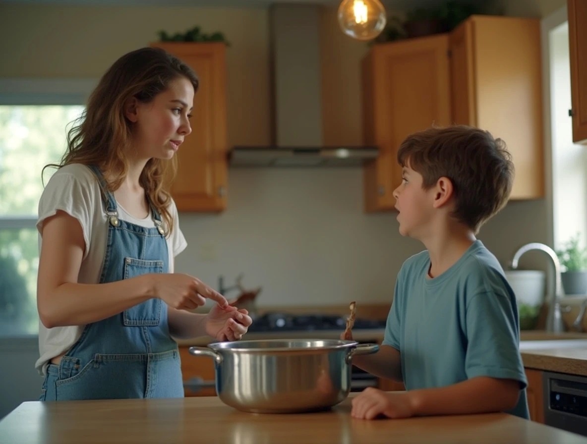 Я замерла с кастрюлей в руках. Горячий суп плеснул на пол.
