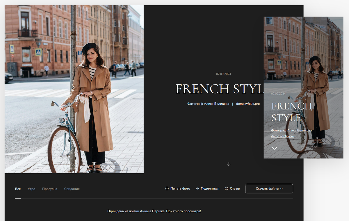 У нас прекрасная новость для всех, кто ждал пополения шрифтов в интерфейсе проектов на диске Wfolio. Мы полностью обновили набор шрифтов в интерфейсе — теперь вместо старых доступно сразу 6 новых стилей : Elegante, Universal, MODERN, Classic, DECORATE, LIGHT. Что изменилось: Шрифты Elegante, Universal и Classic сохраняют оригинальный регистр в заголовках и названиях папок. Остальные шрифты отображают заголовки и названия заглавными буквами (капсом). Важно для старых пользователей: Если вы раньше использовали шрифт Modern (Forum), вас автоматически перевели на стиль Elegante. Пользователи, применяющие шрифт Classic (Inter) — теперь будут видеть интерфейс в стиле Universal. Надеемся, вам понравятся новые возможности оформления! Найти и подключить новые шрифты можно по-прежнему в настройках дизайна и обложки после загрузки фотографий.