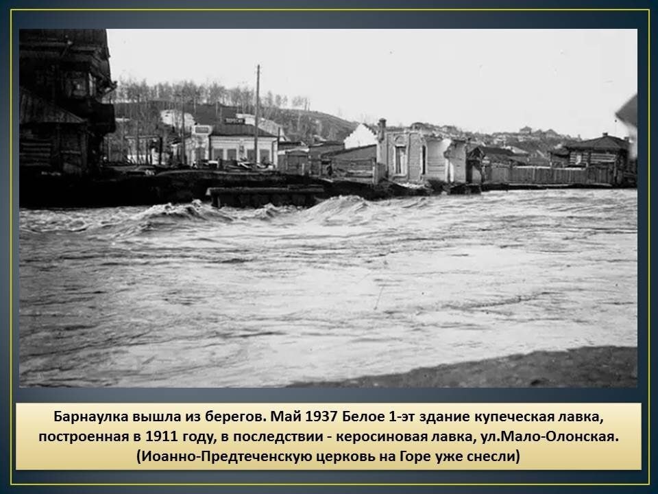 🌧 Думаете, нас сильно затопило во время дождя? Самое большое затопление Барнаула было в 1937 году. Тогда вода в городе достигла достигла исторического максимума – 763 см Была затоплена большая часть города, от устья Барнаулки до Демидовской площади. Под водой оказались Старый базар, лесопильный завод, ул. Льва Толстого, Пушкина. Водой разлившейся Барнаулки разрушены здания, снесены три моста, на территории лесозавода размыло склад горючего 📷 Научная библиотека АлтГУ 🗺 Место на карте ❤️ Подписывайтесь на «Через край»