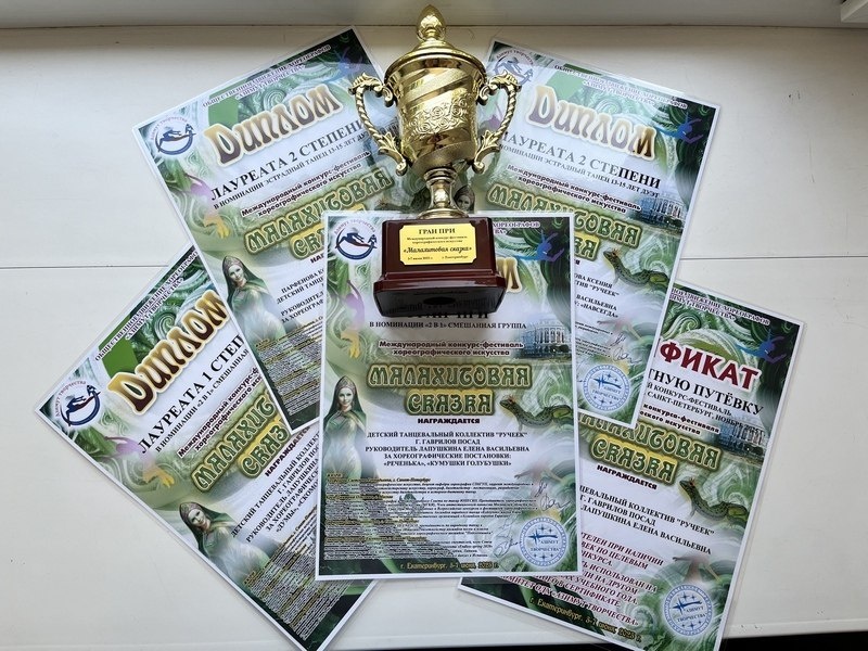Танцевальные коллективы гаврилово-посадского ДЮЦ «Ручеек» и Дома культуры «Горошины» вернулись с Международного конкурса-фестиваля хореографического искусства «Малахитовая сказка». Причем «Ручеек» - с триумфом: впервые почти за 20 лет ансамбль завоевал Гран-При, а конкурсный номер «Кумушки-голубушки» был представлен на Гала-концерте.