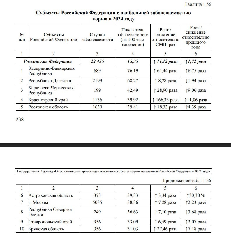 В Северной Осетии уровень заболеваемости корью вырос почти в 4 раза Республика заняла 8-е место среди регионов с наибольшей заболеваемостью корью. Согласно докладу Роспотребнадзора, в прошлом году в регионе выявили 246 случаев заболевания. По сравнению с 2023 годом показатель увеличился на 368%. В ведомстве отметили, что почти 90% заболевших не были привиты.