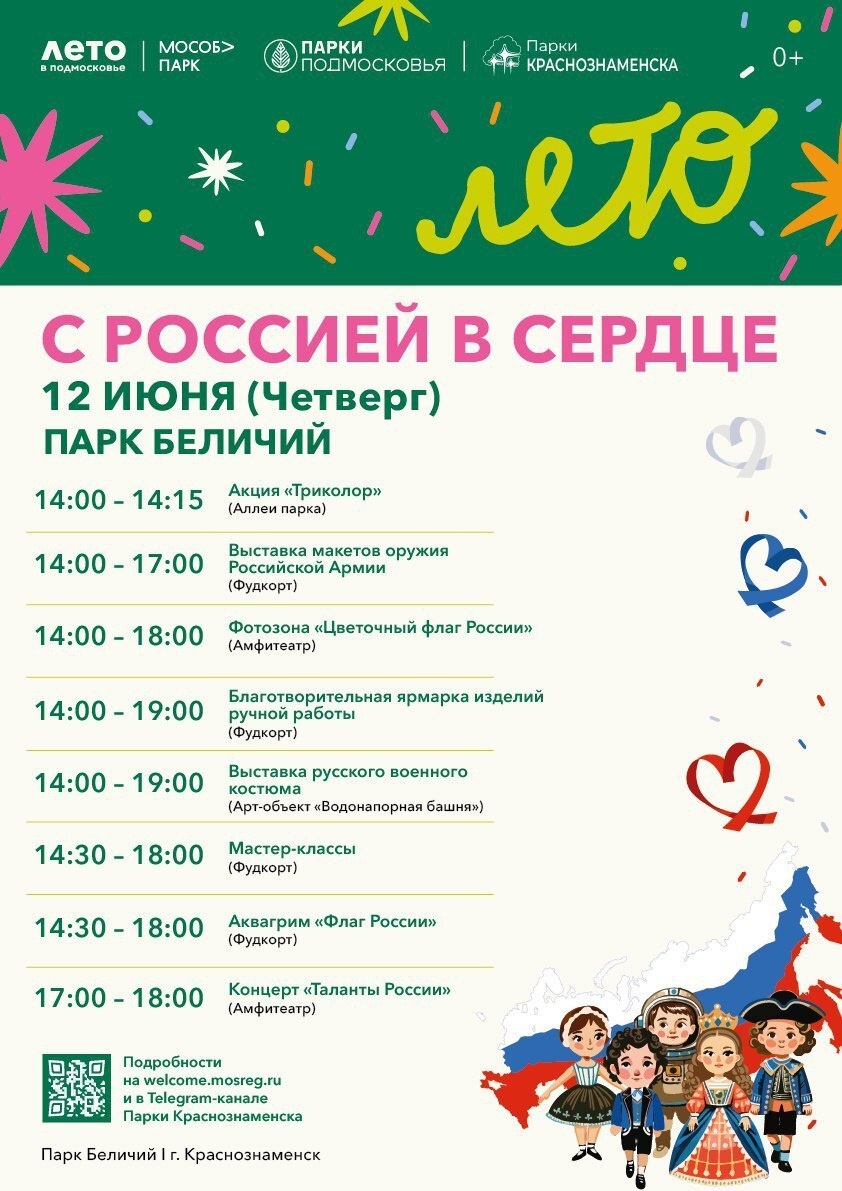 🇷🇺 Приглашаем встретить День России в парке «Беличий»! 12 июня гостей праздника «С Россией в сердце» ждут концерт, мастер-классы, выставки, раздача ленточек «триколор», аквагрим и фотозона. Будем рады видеть (с) Парки Краснознаменска t.me/park_kz